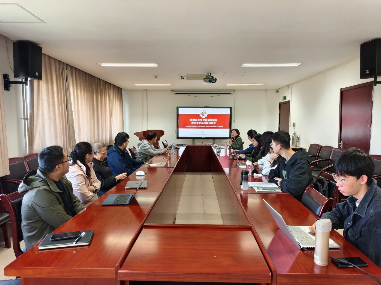 申静以“中国自主知识体系建构与智库生态系统建设研究”为题,围绕习近平总书记“加快构建中国哲学社会科学,归根结底是建构中国自主的知识体系”等重要论述和中央印发的《关于加强中国特色新型智库建设的意见》等重要文件,系统讲述了中国自主知识体系建构和中国特色新型智库生态系统建设的重要性和迫切性,剖析了二者之间的互促关系,梳理了“中国自主知识体系”和“智库生态系统”两大重要概念及其相关研究,并向与会人员分享了课题组近期的研究成果。