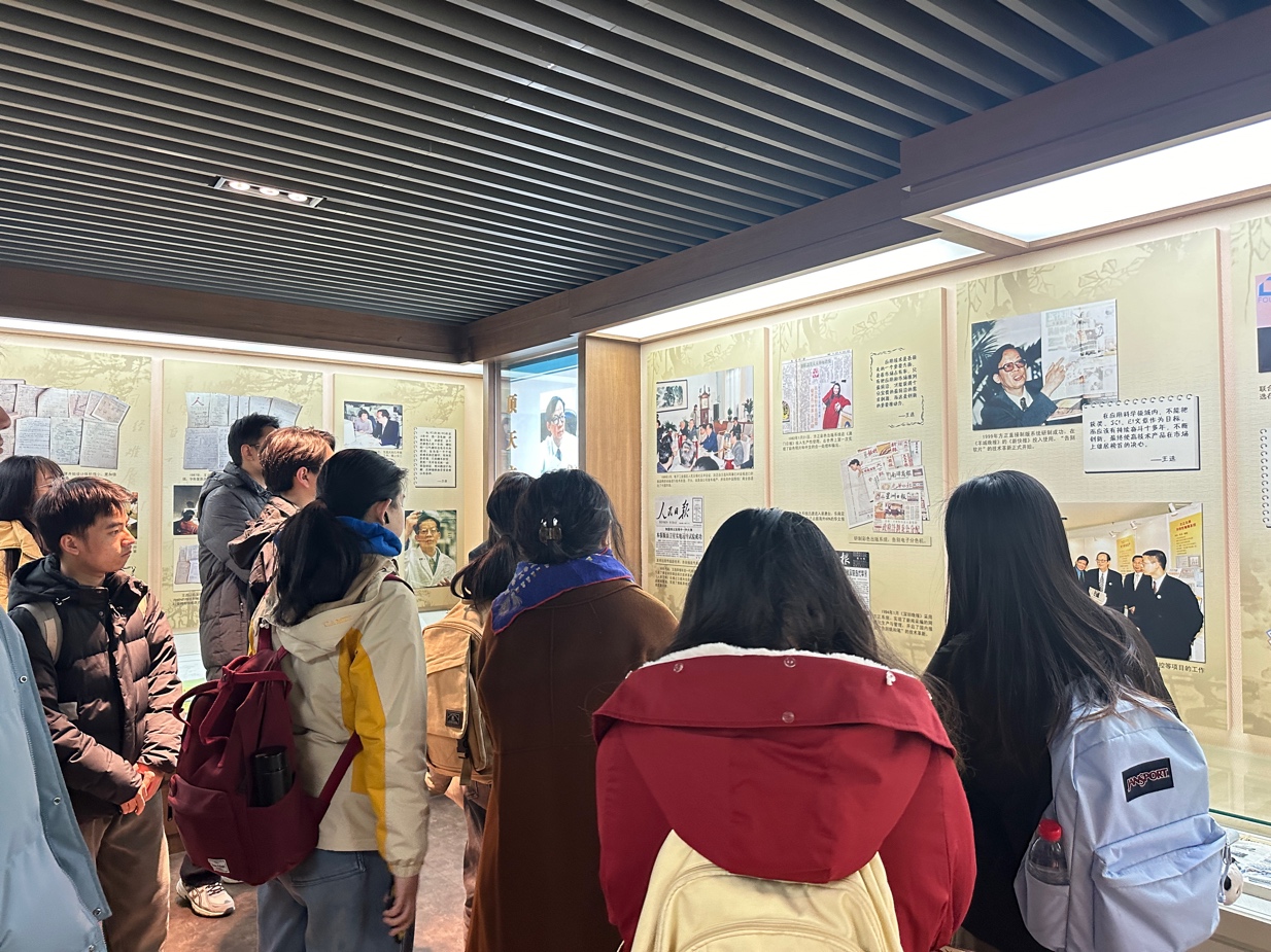 王选纪念陈列室分为创新历程厅和生平事迹厅两个展厅,全面展示了王选院士的科研成就及其对我国科技发展的深远影响,师生一行分为两队,先后参观了两个展厅。