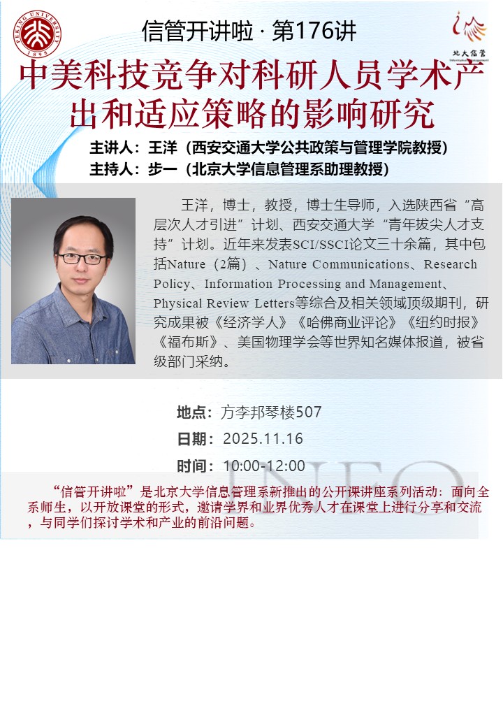 信管开讲啦·第176讲 | 中美科技竞争对科研人员学术产出和适应策略的影响研究