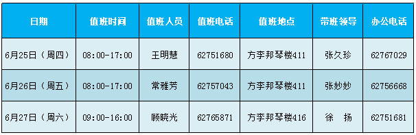 信息管理系端午节带班及值班安排