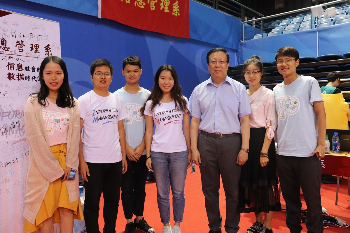 新生报到期间,郝平书记、林建华校长等校领导来到迎新现场看望新生同学们,慰问迎新的老师和志愿者们,向他们仔细了解了信息管理系2018年本科生招生情况、新生报到情况,并与现场的师生合影留念。