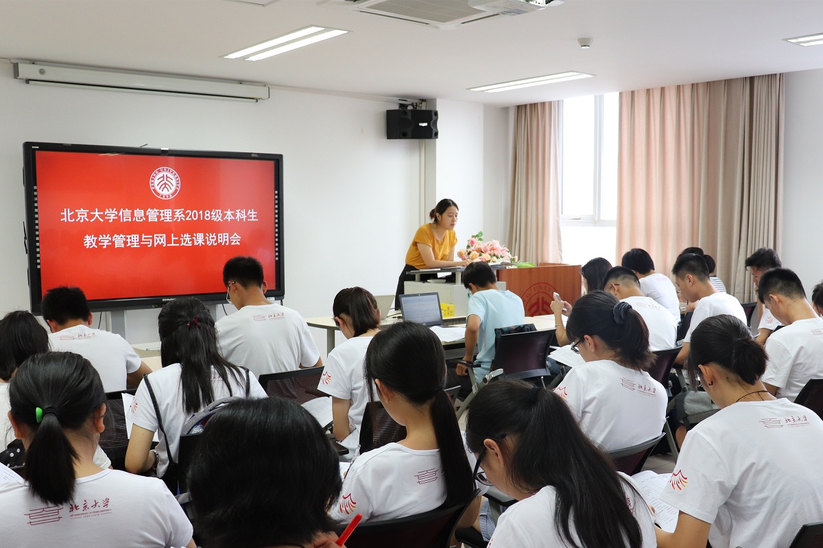 当天下午16点,信息管理系在方李邦琴楼414室召开了本科生教学管理与选课指导说明会。本科生教务邓佳佳老师为2018级本科生介绍了教务管理的事项、解读了信息管理系本科生培养方案和本科生选课要求。团学联学术部汪亚宁同学演示了网上选课流程,指导新生在网上选课。