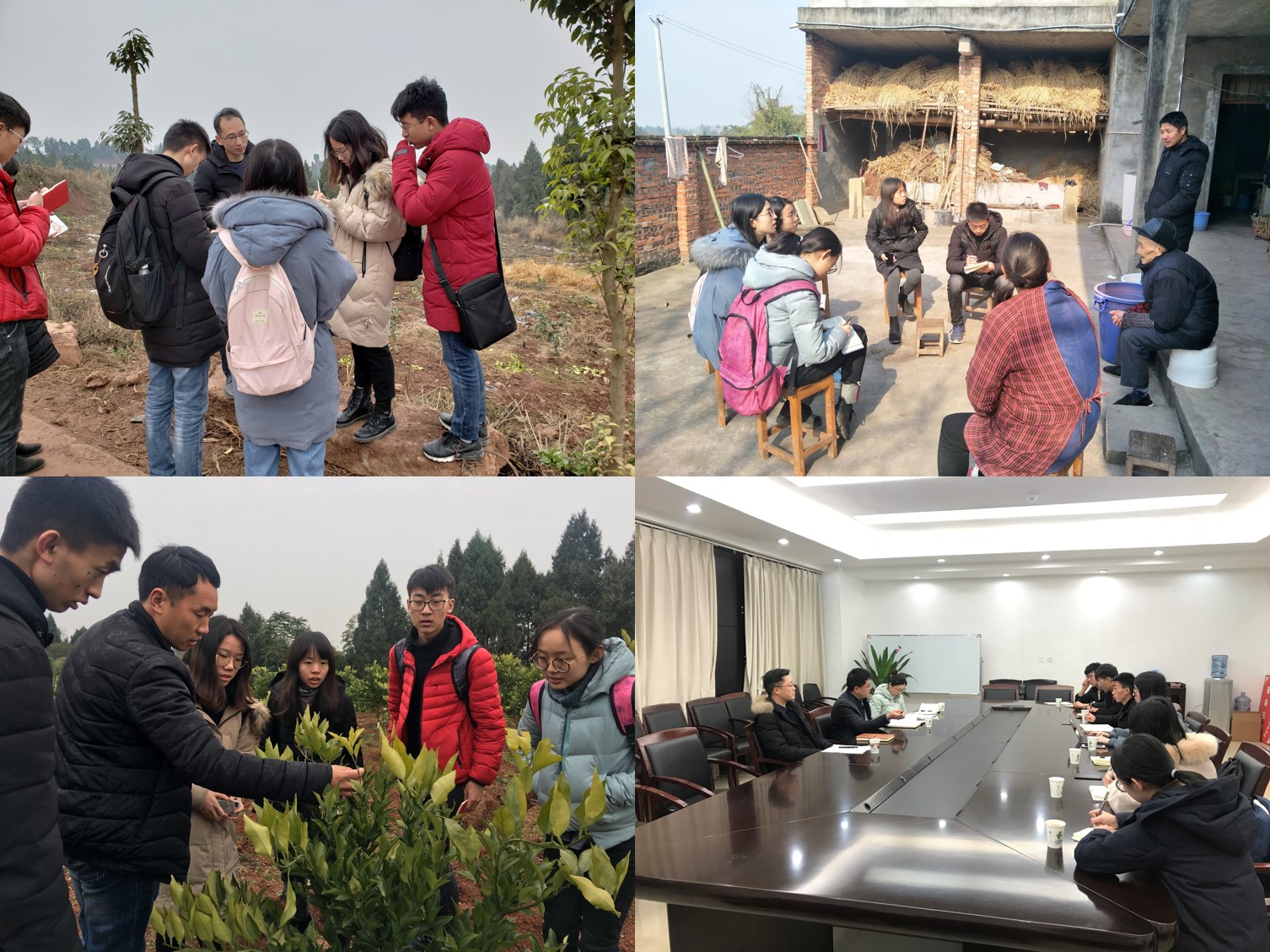 在21日至24日,资阳分队的六名同学深入到中和镇红光村、伍隍镇爆花村、小院镇栀子湾村和清水乡指书庙村,访谈扎根奋斗在扶贫一线的驻村第一书记、村支书、村长等农村基层干部,入户下地与广大农民群众亲切交流,调研了网络光纤等信息基础设施建设情况、农村土地集约化利用与特色产业发展情况,以及农民群众的信息需求与信息获取情况,并结合专业知识尝试探究信息与技术对扶贫工作的影响和作用机理。在调研最后一天,同学们与资阳市雁江区政府办公室、扶贫办的干部进行了座谈,向他们反馈了初步的调研成果,共同交流探讨了信息扶贫工作的焦点问题,并向地方给予实践活动的支持表示诚挚感谢。