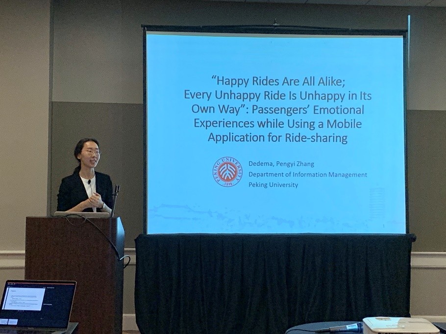 德德玛同学、张鹏翼老师合作的长论文《“Happy Rides are All Alike; Every Unhappy Ride is Unhappy in its Own Way”: Passengers’ Emotional Experiences while Using a Mobile Application for Ride-sharing》被会议录用并进行了展示,这一关于“共享交通”(Ride-sharing)领域的“情感体验”(Emotional Experience)研究在会场收获了很多的讨论,激发了新的研究兴趣。